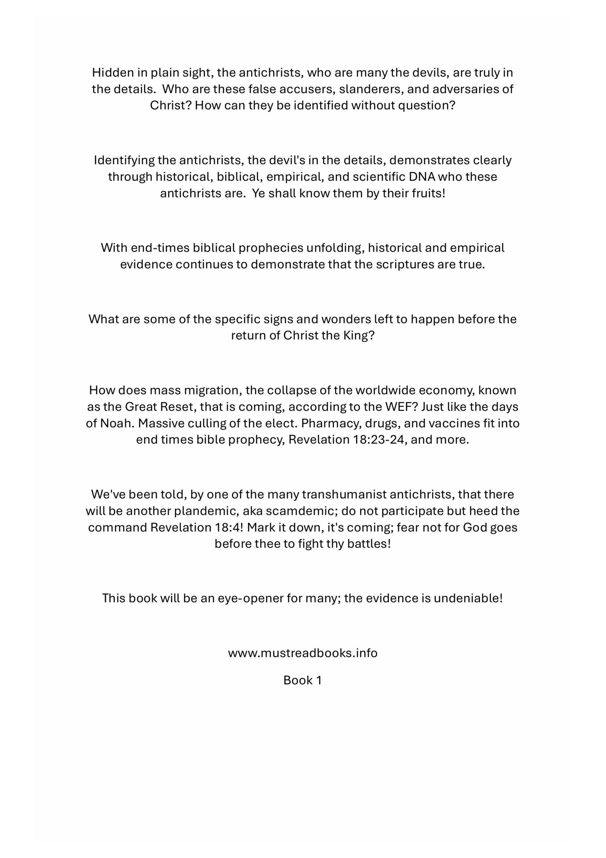 END TIMES BIBLE PROPHECY: IDENTIFYING, THE ANTICHRISTS THE DEVIL'S IN THE DETAILS